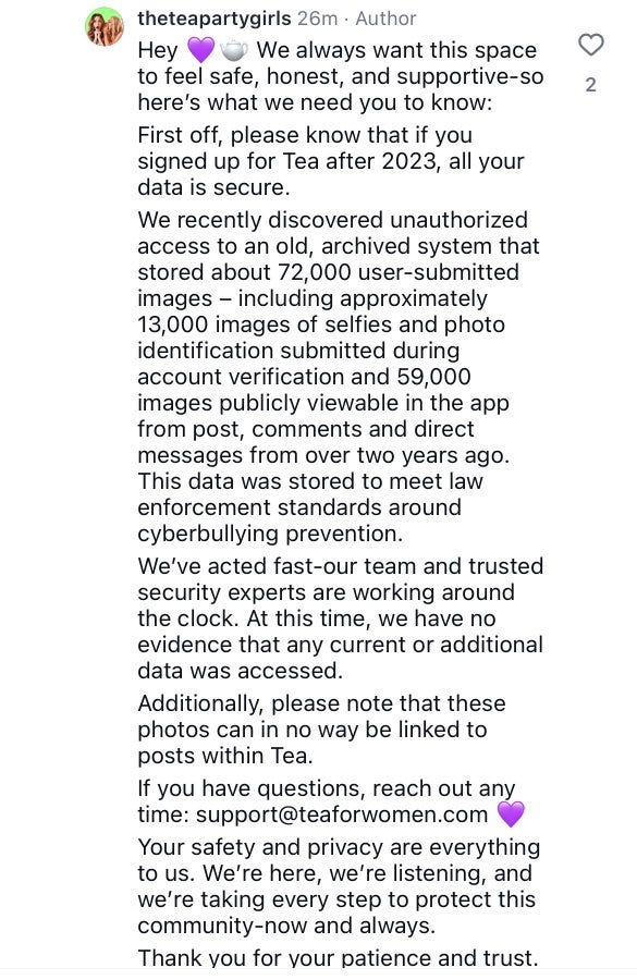 Here’s the original statement from Tea App